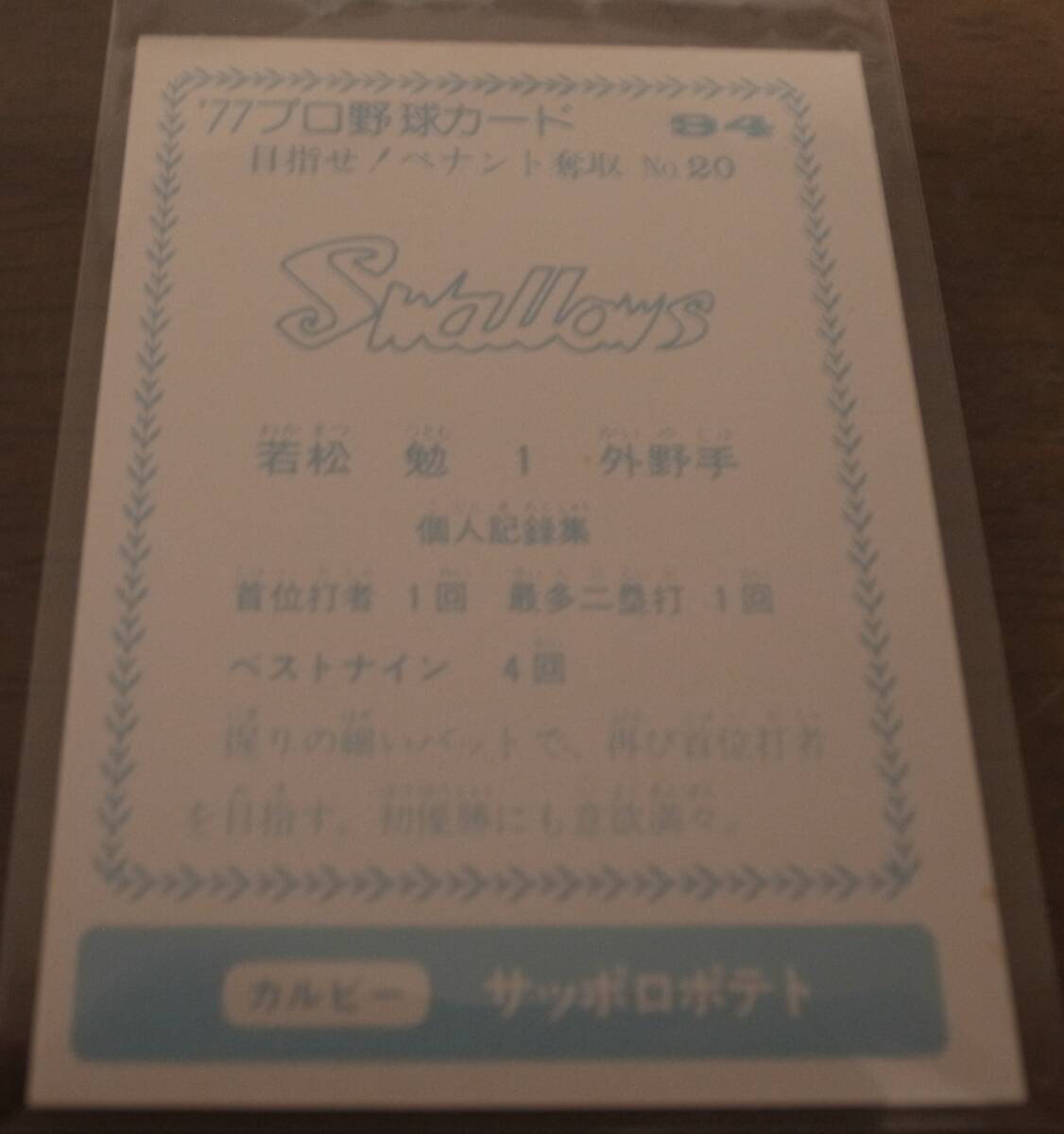 ■カルビープロ野球カード1977年/青版/No94/目指せ!ペナントレース奪取No20/若松勉/ヤクルトスワローズ | ||