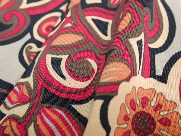 | 色 赤×ベージュ×黒など柄 素材 表地 レーヨン90% ポリウレタン10% 裏地 ポリエステル | |