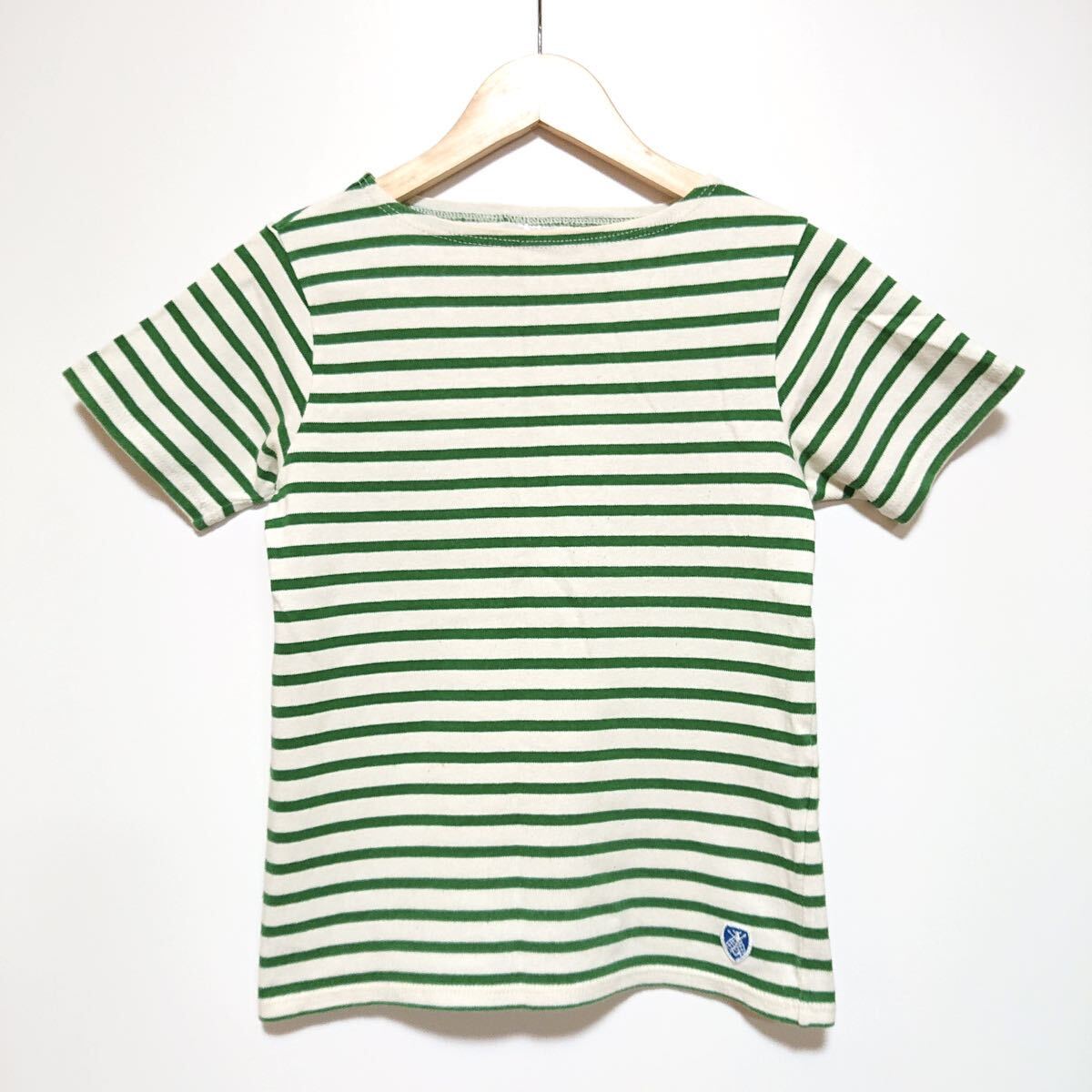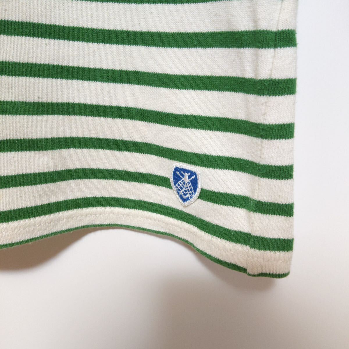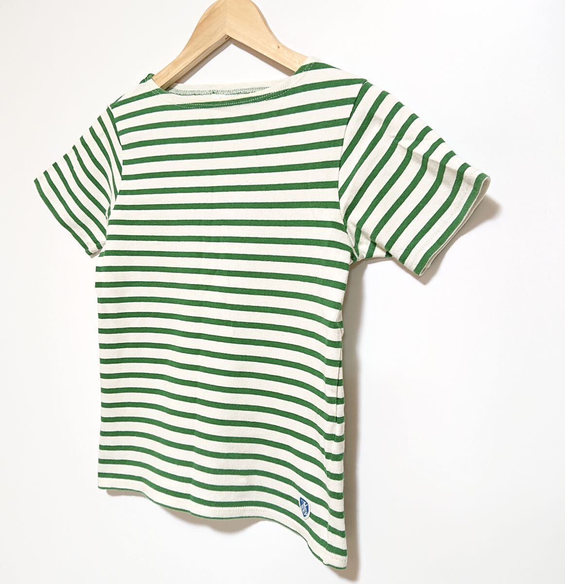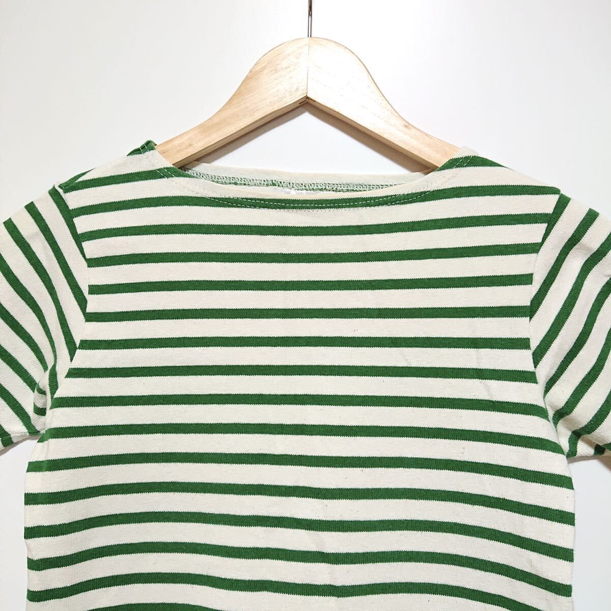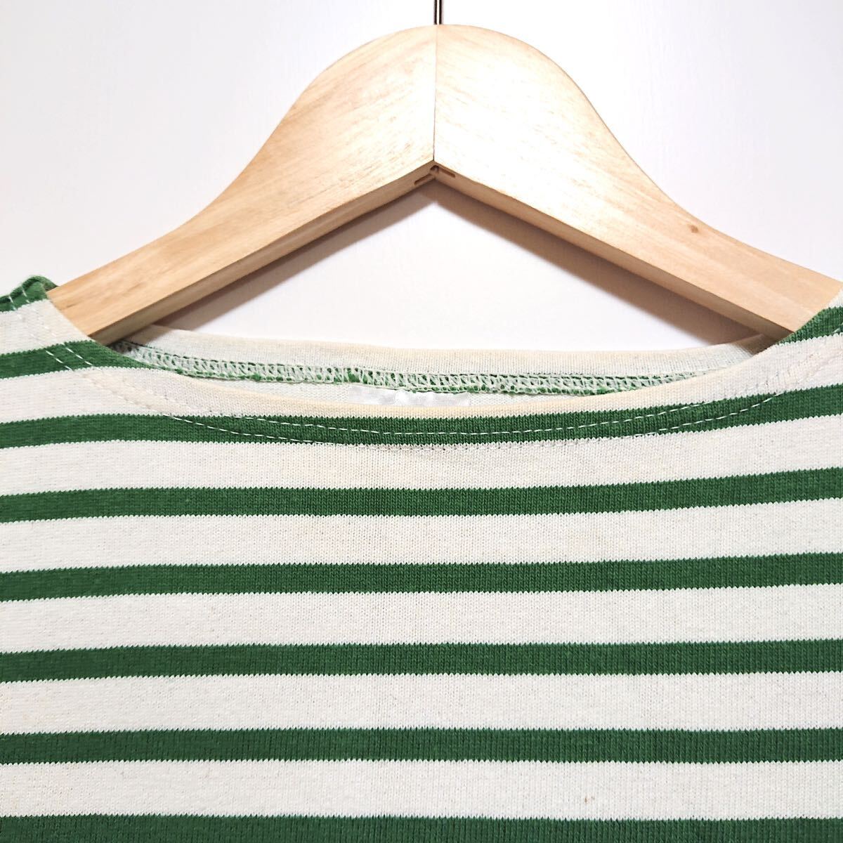 H9532gg フランス製 ORCIVALオーシバル サイズXS位 半袖カットソー Tシャツ ボーダー グリーン×ホワイト レディース シンプル カジュアル