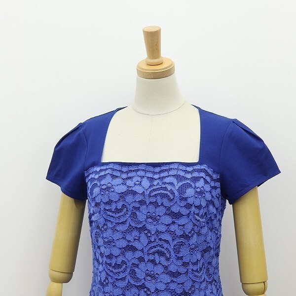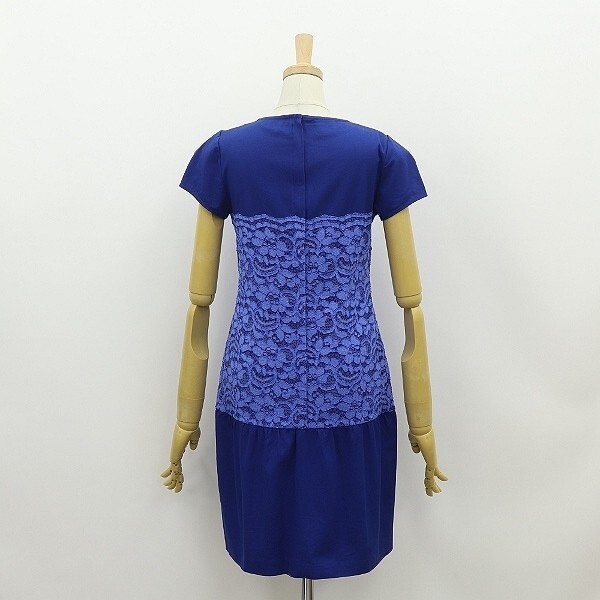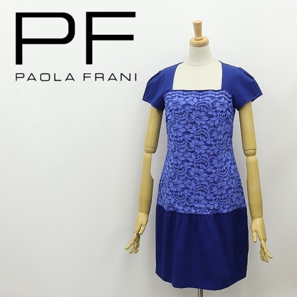 | 美品◆PAOLA FRANI パオラフラーニ ストレッチ コットン レース 切替 ギャザー ワンピース 青 ブルー×ネイビー 38 | |