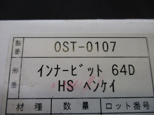 未使用品 インナービット OST-0107 64D HS ヘンケイ 削岩 特殊工具 展示品 保管品です。