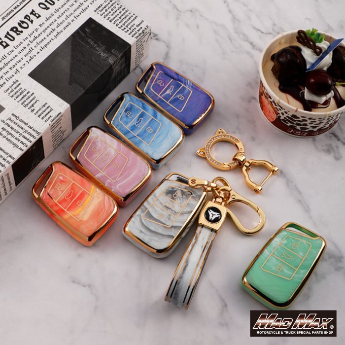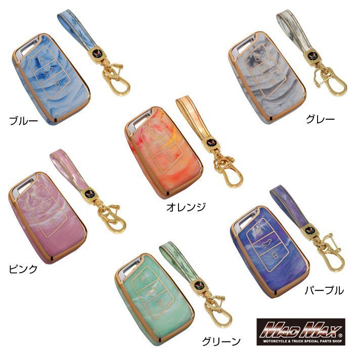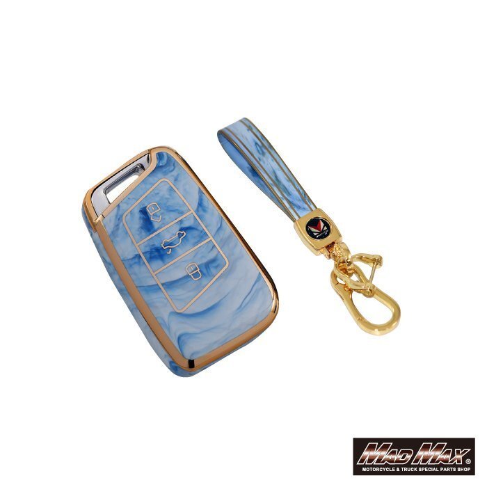 フォルクスワーゲン専用 大理石調 TYPE D TPUスマートキーケース ブルー。