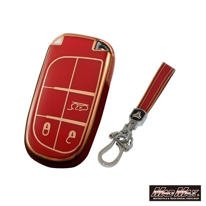 ジープ専用 ゴールドライン TYPE C 3ボタン式 TPUソフト スマートキーケース レッド。