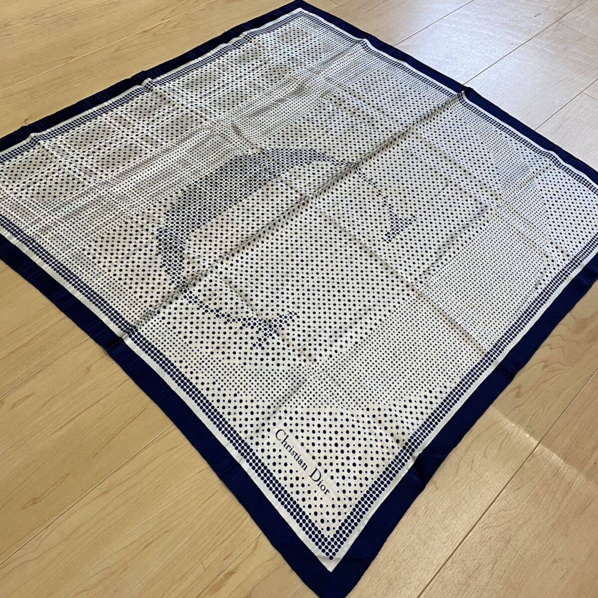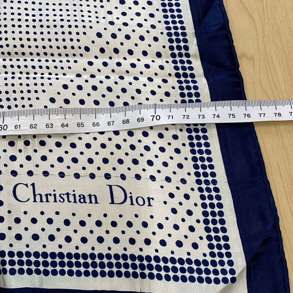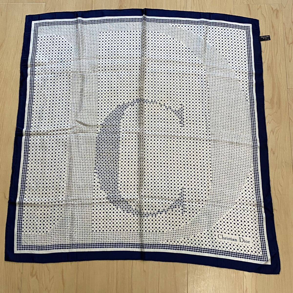 Christian Dior クリスチャンディオール スカーフ  ドット Cマーク ふちネイビー no.30