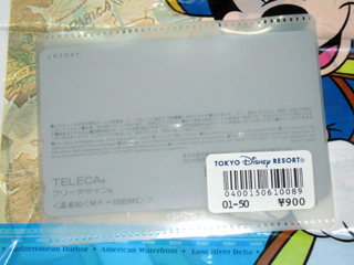 東京ディズニーシーの『オリジナルテレフォンカード』枚です。