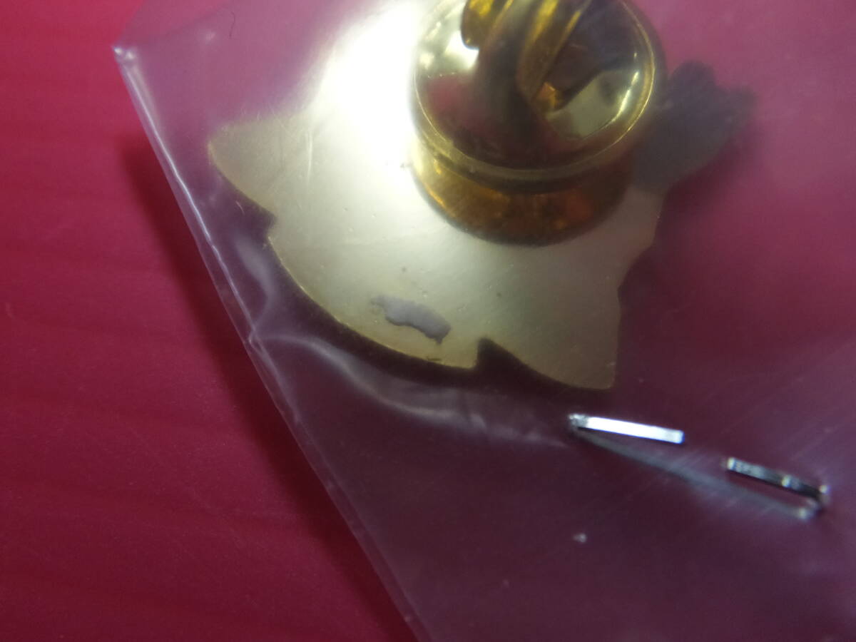 (上記とは別に片方のピンバッジ裏面には、なにか白い塗料?の付着?のようなものがございます)