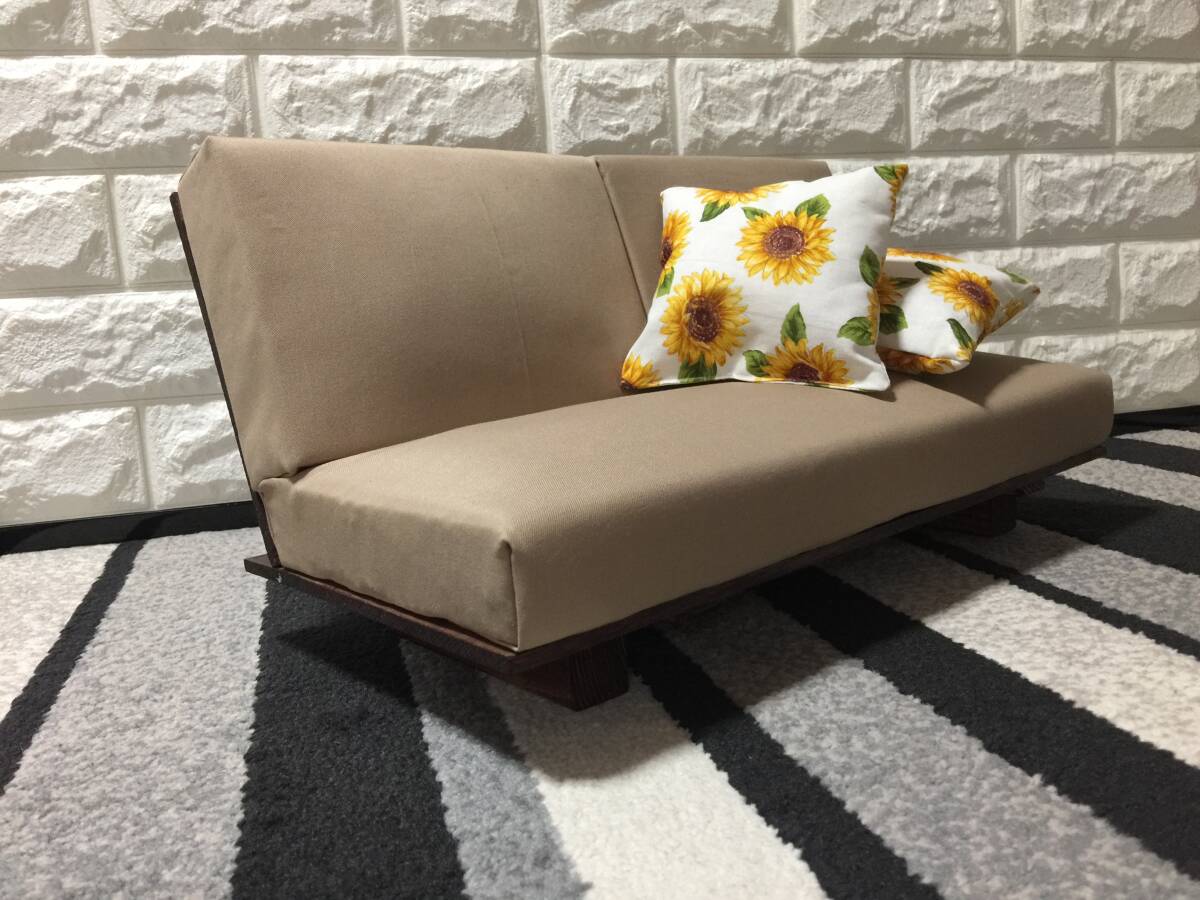 【DOLLソファー】ドールベンチ ベージュ② 木製 1/3ドール/1/4ドールDD/SD//BJD/AZONE/ANGEL PHILIA/オビツ 70cmサイズドールなど