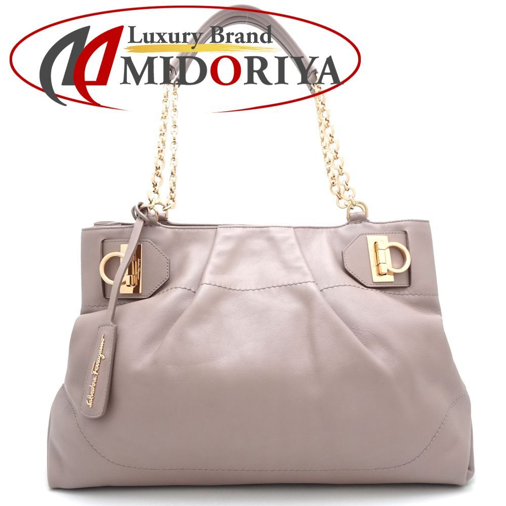 Salvatore Ferragamo サルヴァトーレフェラガモ トートバッグ ガンチーニ レザー グレージュ/351518【中古】