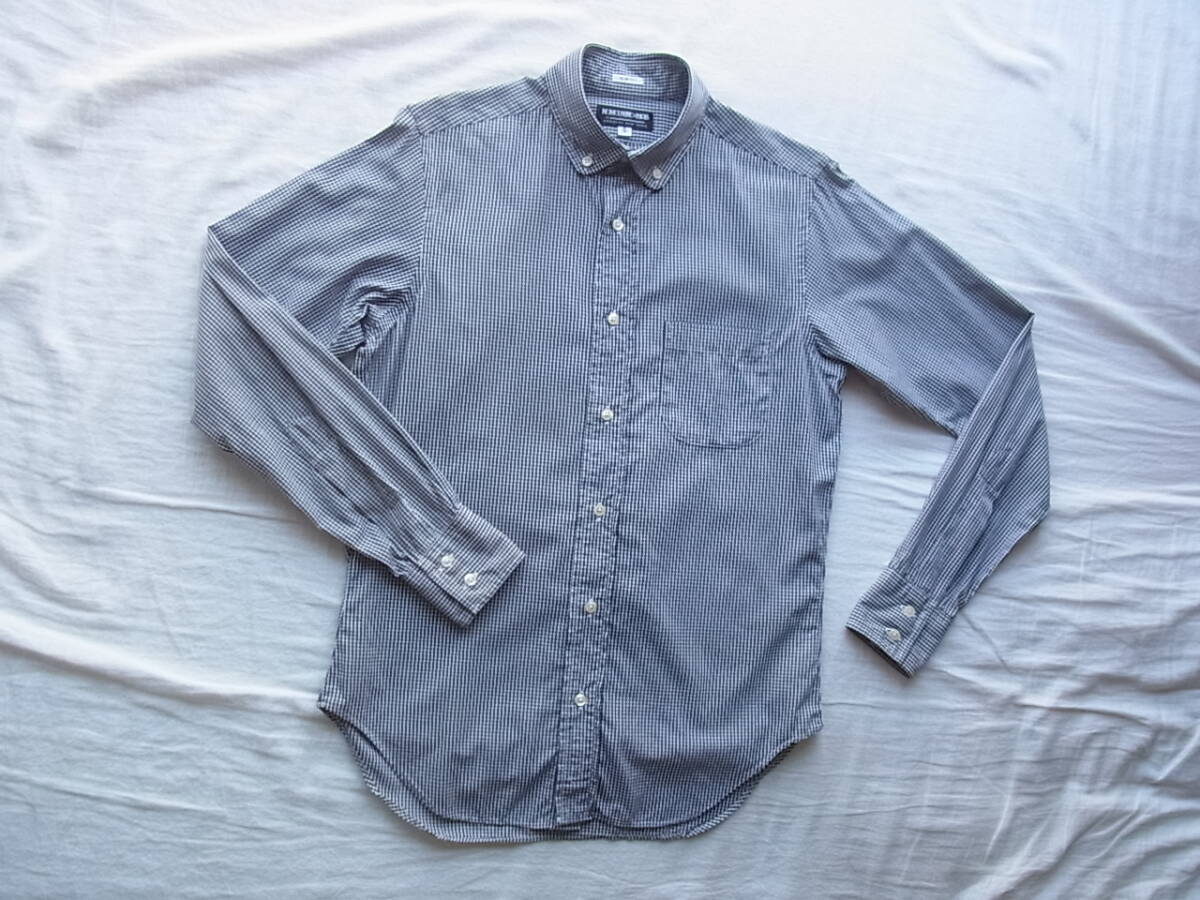 バーニーズニューヨーク別注でインディビジュアライズドシャツのギンガムチェック柄でラウンドカラーのボタンダウンシャツになります。USEDで着用感と、右袖口カフスの角に6枚目の画像の様なスレのダメージが御座います。それ以外には特に目立ったダメージ等は御座いません。