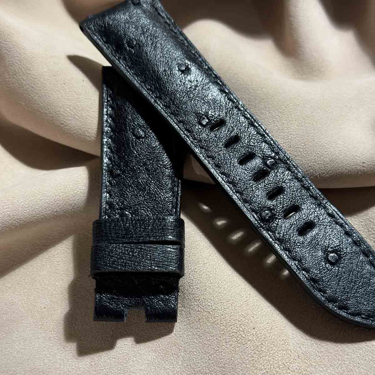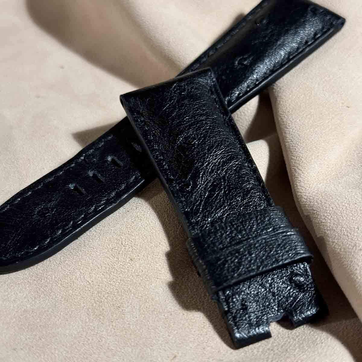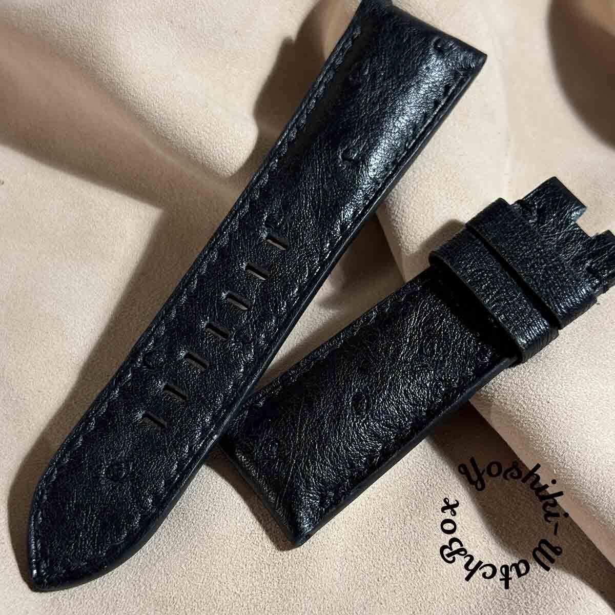 ost-340 オーストリッチレザー 腕時計ベルト ブラック (ラグ幅26mm - バックル幅22mm)