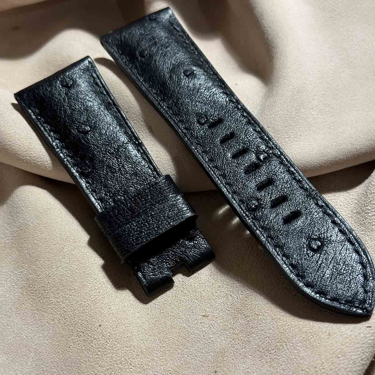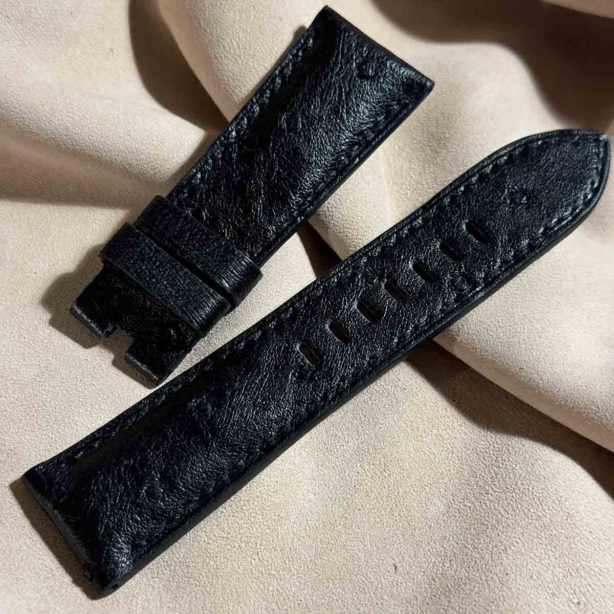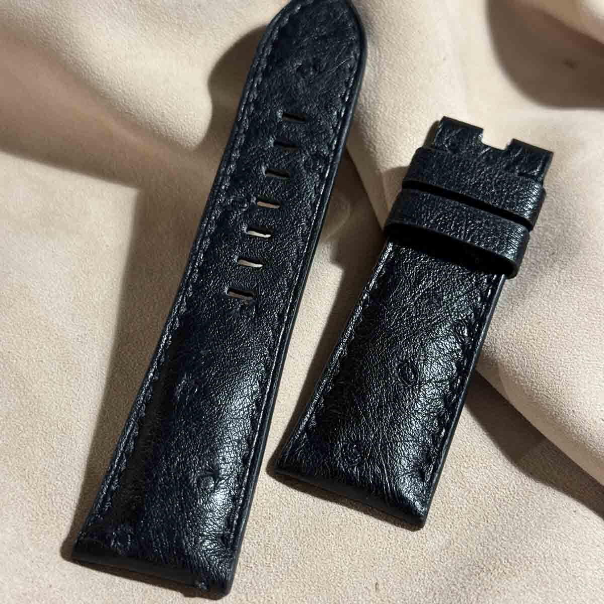 ost-340 オーストリッチレザー 腕時計ベルト ブラック (ラグ幅26mm - バックル幅22mm)