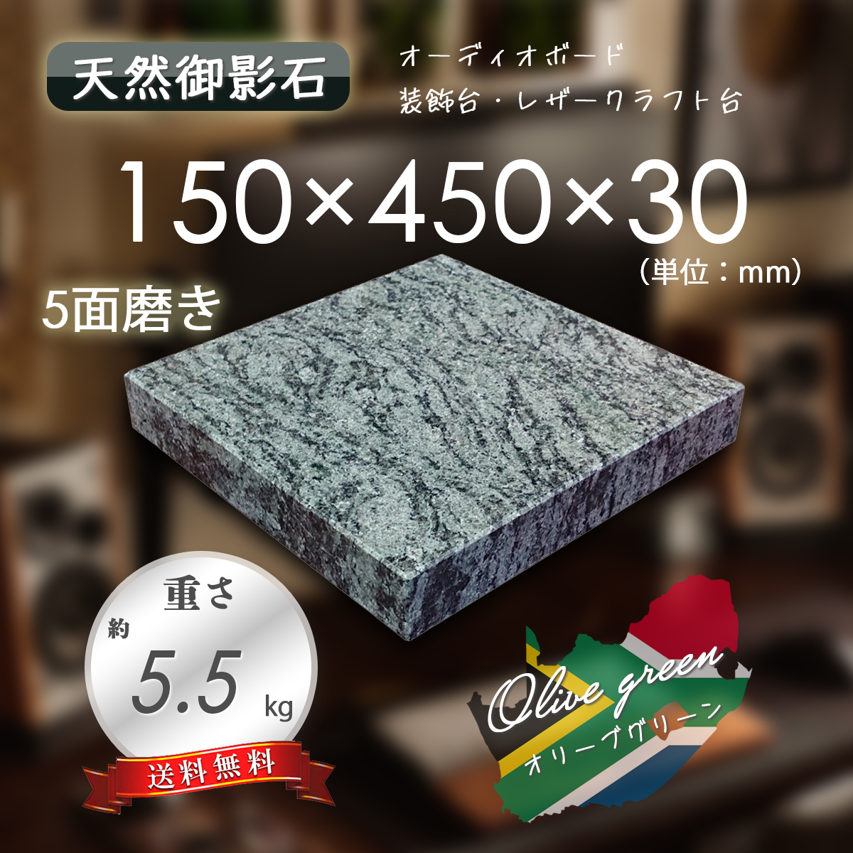 【高級天然御影石】 オーディオボード 緑系 オリーブグリーン 150mm×450mm×30mm 5面磨き 新品 即決 送料無料 ★超特価★