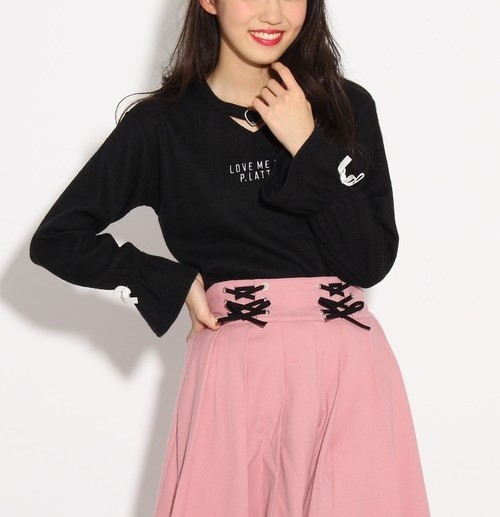 ラスト 新品 PINK-latte ★ニコラ掲載★チョーカー付きキャンディースリーブトップス ブラック(019) 15(XS150cm)  定価2530円