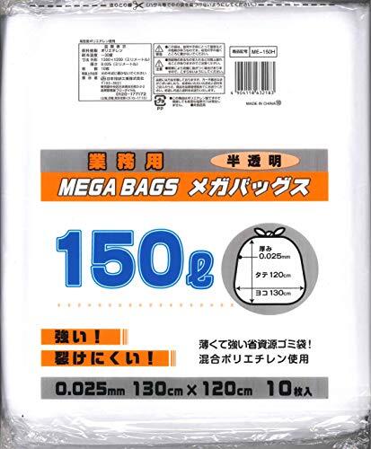 「メガバックス 半透明 ポリ袋 150L 10枚入」▼4904118632183▼(商品説明)・半透明 150L 516974.0・商品サイズ (幅×奥行×高さ) :300×10×370mm・内容量:10枚入説明 ●21世紀型ポリ袋! 薄い! 強い! 裂けにくい! ●ポリエチレン製ですので、焼却しても有害ガスを発生しません。 ●半透明/150リットル/10枚入 ●耐冷温度:-30度
