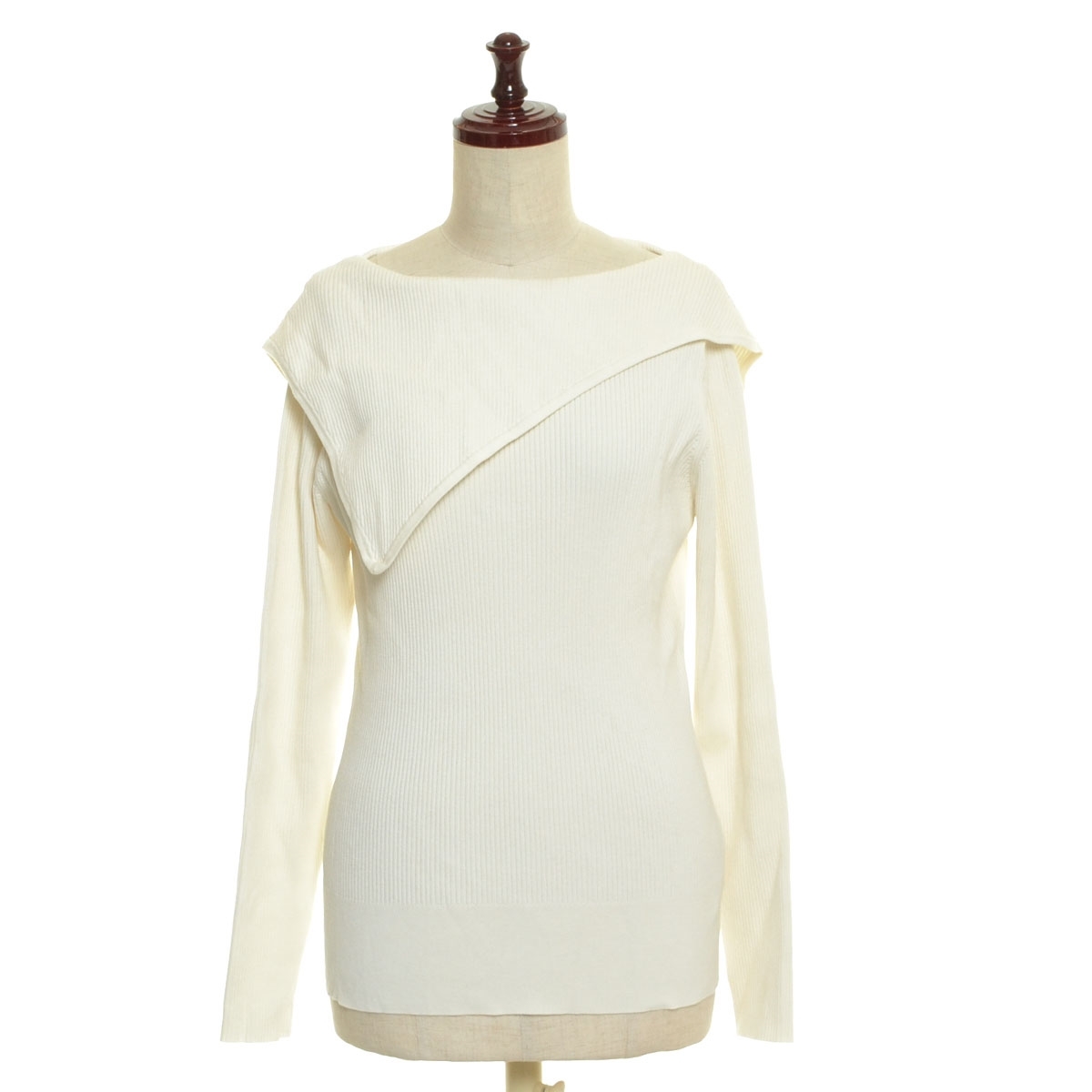 ■519974 CELFORD セルフォード ●長袖カットソー ビッグカラーリブニットプルオーバー サイズ38 22ss レディース ホワイト