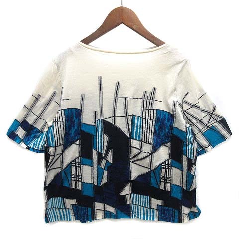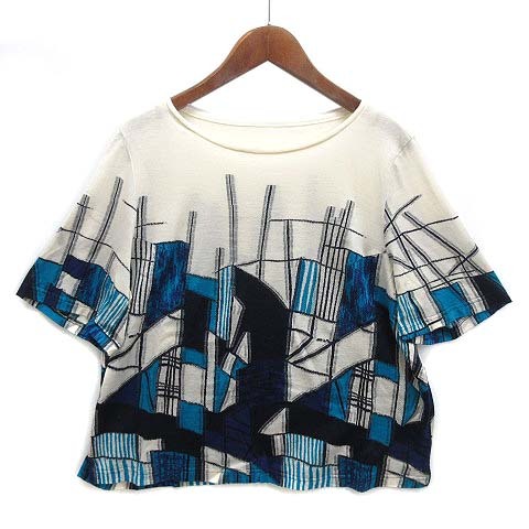 トロワボヌール TROIS BONHEURS ボートネック ジャガード 編地切替 Tシャツ カットソー 半袖 アイボリー 40 レディース