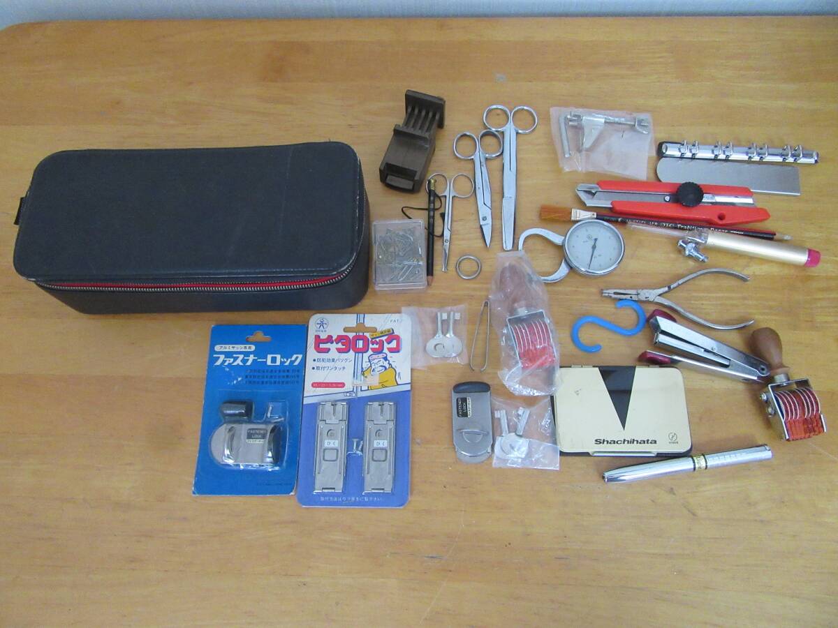 ★革製工具箱と雑多な工具や部品類★工具入れ&工具★ツールケース ツールバッグ☆持ち運びラクラク工具箱☆