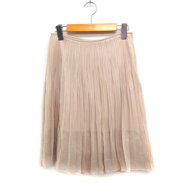ノーベスパジオ NOVESPAZIO プリーツ スカート ひざ丈 無地 シフォン 38 ベージュ /FT34 レディース