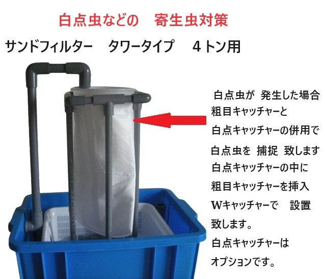 普通に 濾過を するだけで 白点虫などの 寄生虫を 捕捉 出来ます。