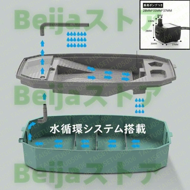 人気推薦 亀の水槽 飼育ケース タートルタンク 大きい カメの水槽 水循環 カメの飼育ケース 日向ぼっこ台 エサ皿 490*250*210mm
