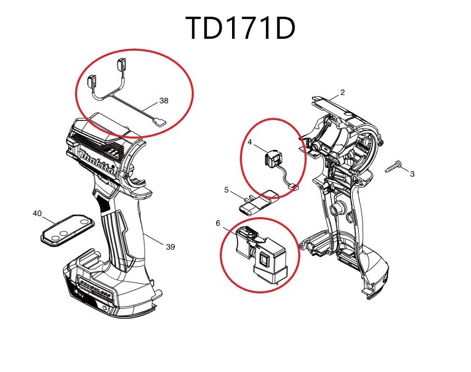 インパクトドライバー TD171D TD161D TD170 DT160D 用 スイッチコンプリート1個