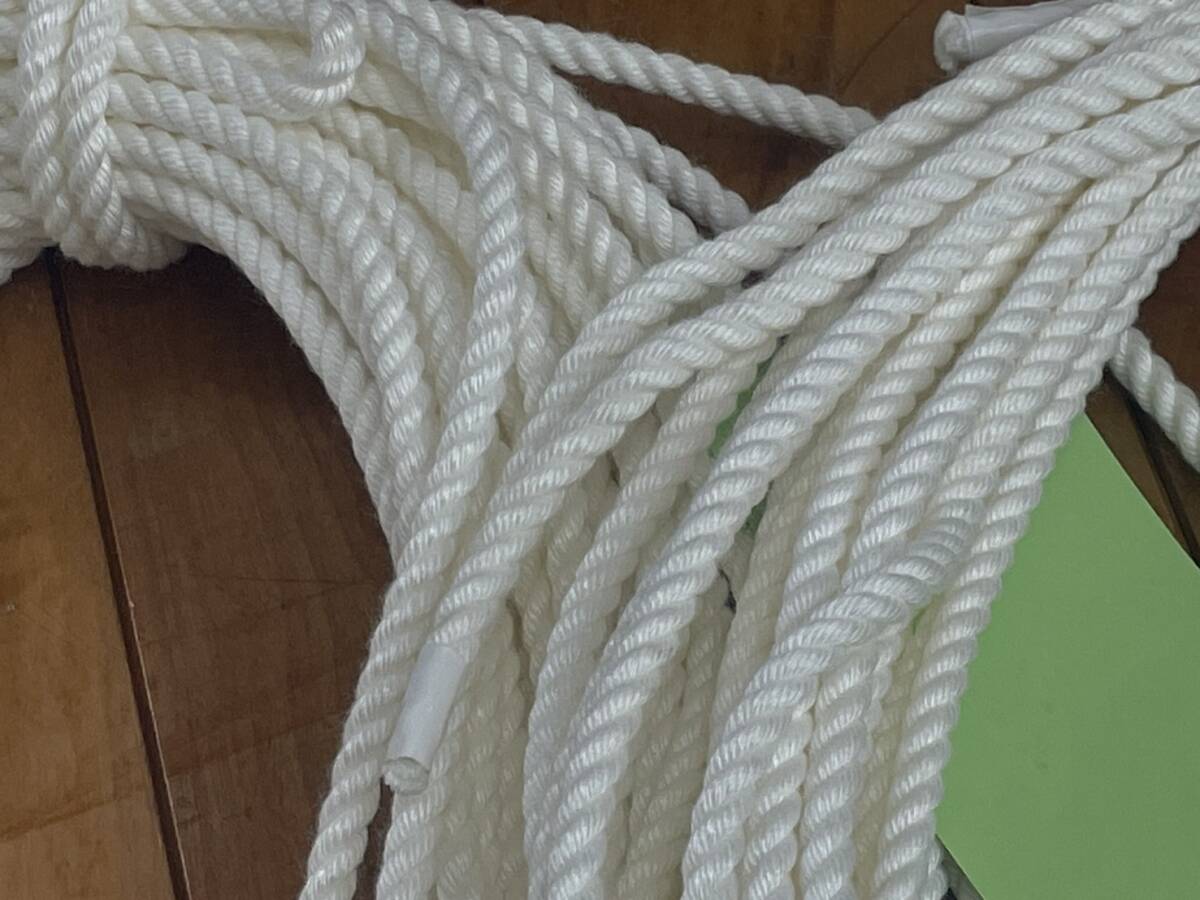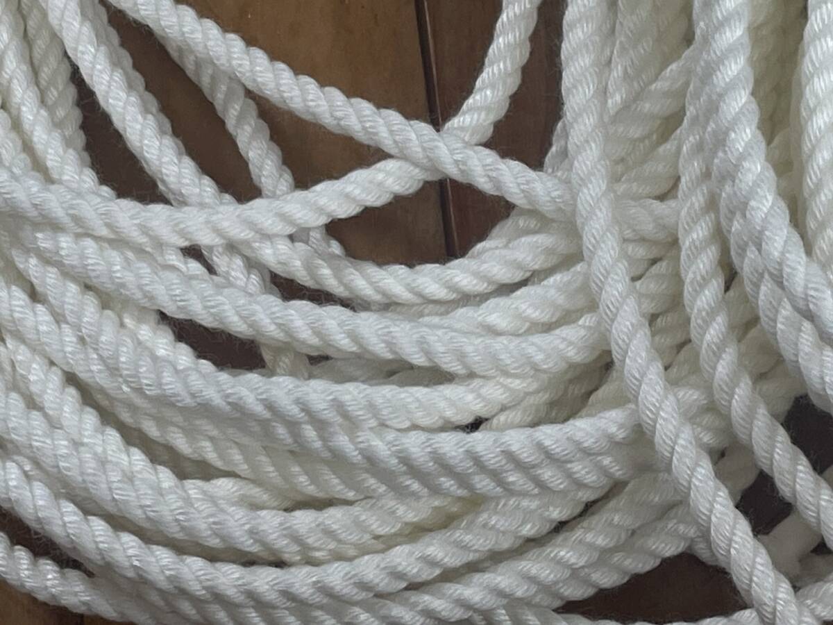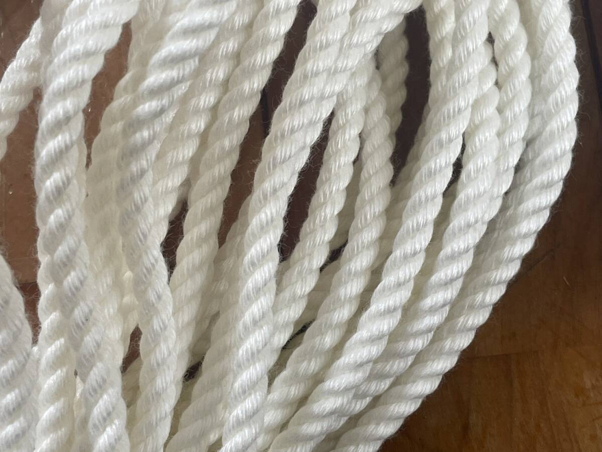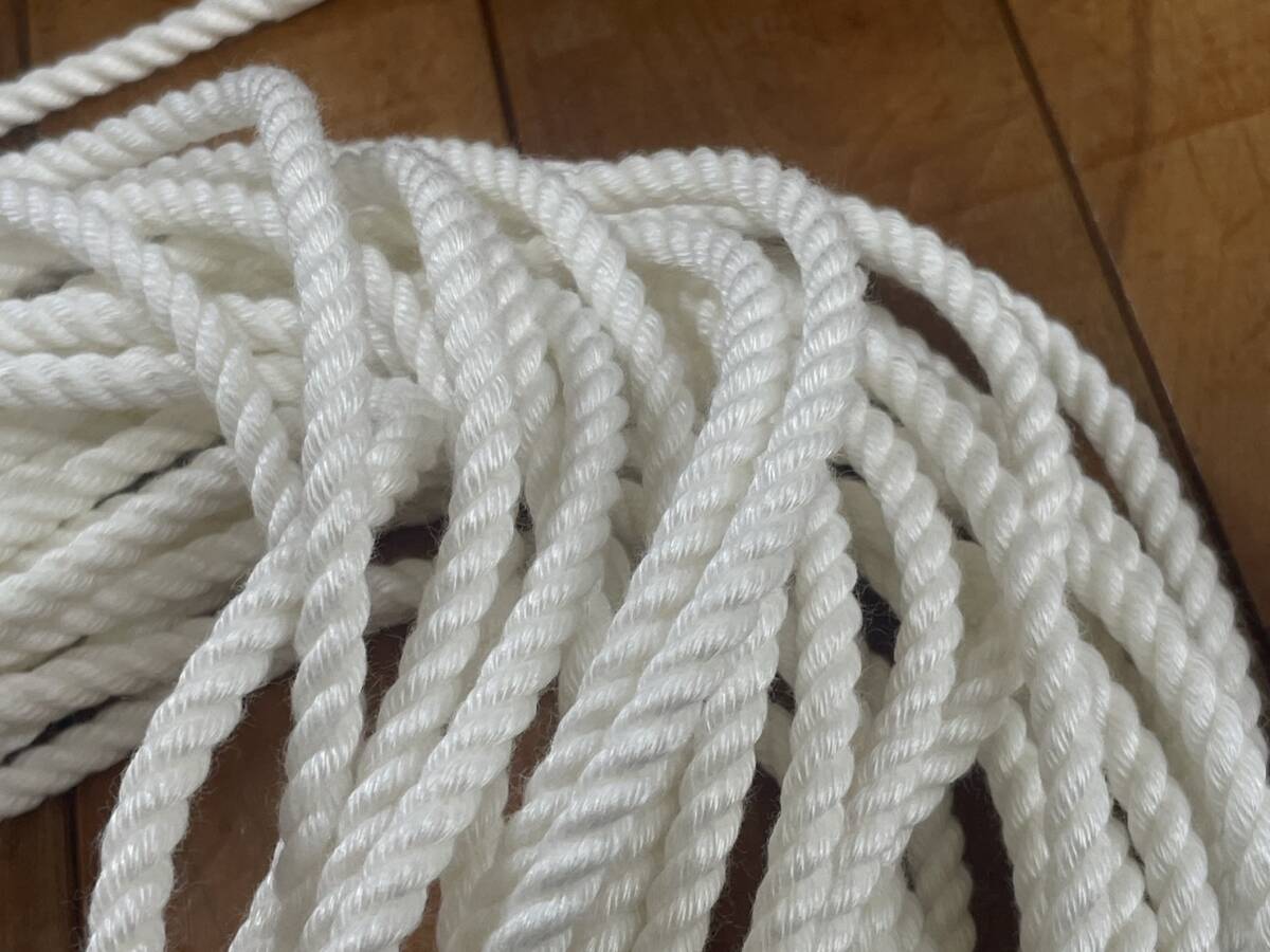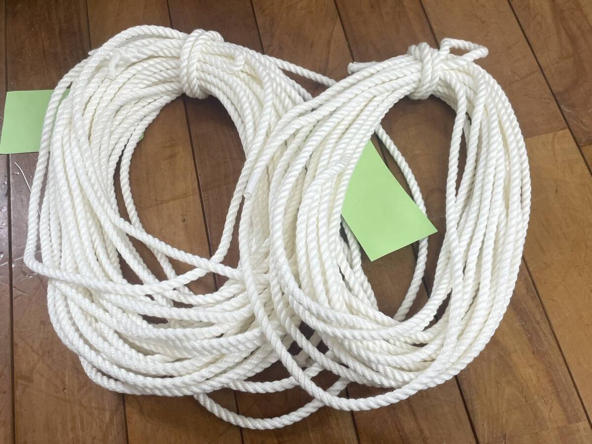激安・新品・国産☆2巻セット//白/ビニロン 三つ打ちロープ ややカタ打ち★6.5mm 0.6Kg