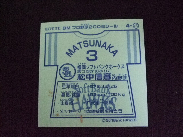 ★激安★即決★ロッテ★ビックリマン★プロ野球★2006★シール★福岡ソフトバンクホークス★松中信彦★3★送料110円★ | ||||||||||||||||||||