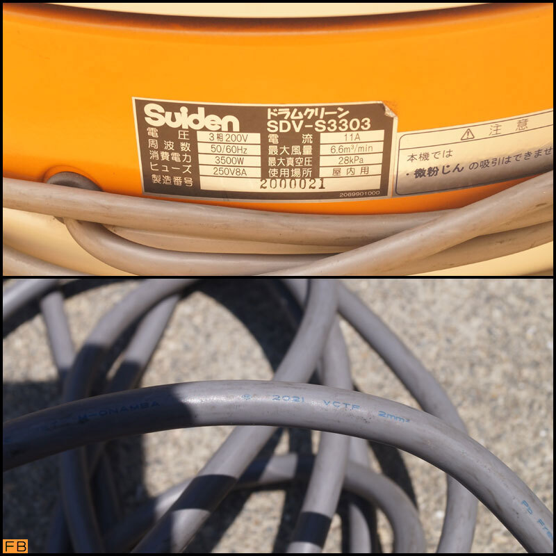 【特 徴】 ドラム缶をダストタンクとして使用できます。 ドラム缶上部を開けてダストタンクとして使用可能です。 大容量のゴミ処理が可能です。 吸込ホース径φ50 【仕 様】 集じん容量(L):180 吸水量(L):180 最大真空圧(kPa):28 最大風量((M3)/min):6.6 騒音値(dB):78 幅(mm):620 奥行(mm):620 高さ(mm):465(ドラム缶から上に出る部分) 電源(V):三相200 消費電力(W):3500 | ||