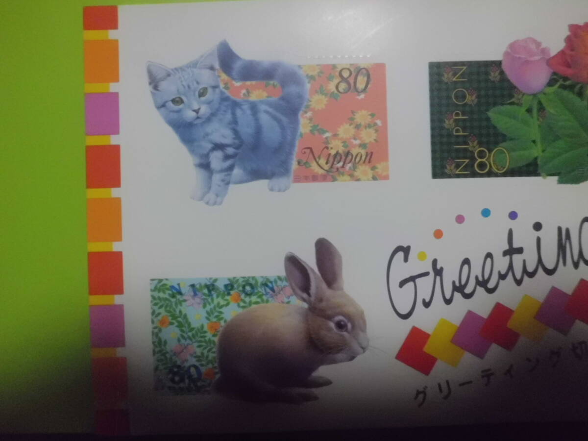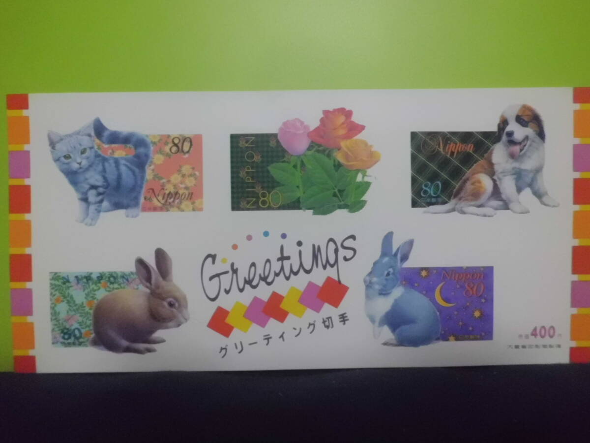 グリーティング切手 未使用 80円×5枚 イヌ ネコ ウサギ 切手シート シール切手です。自宅保管品につき、ノークレーム、ノーリターンでお願いします。他にもいろいろ出品しておりますので、お暇な方はご覧下さい。
