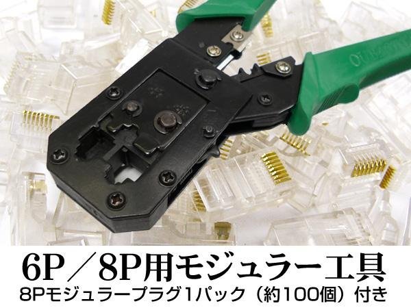 モジュラー圧着工具 6P・8P用 プラグ8Px100個付 送料無料/18Ξ
