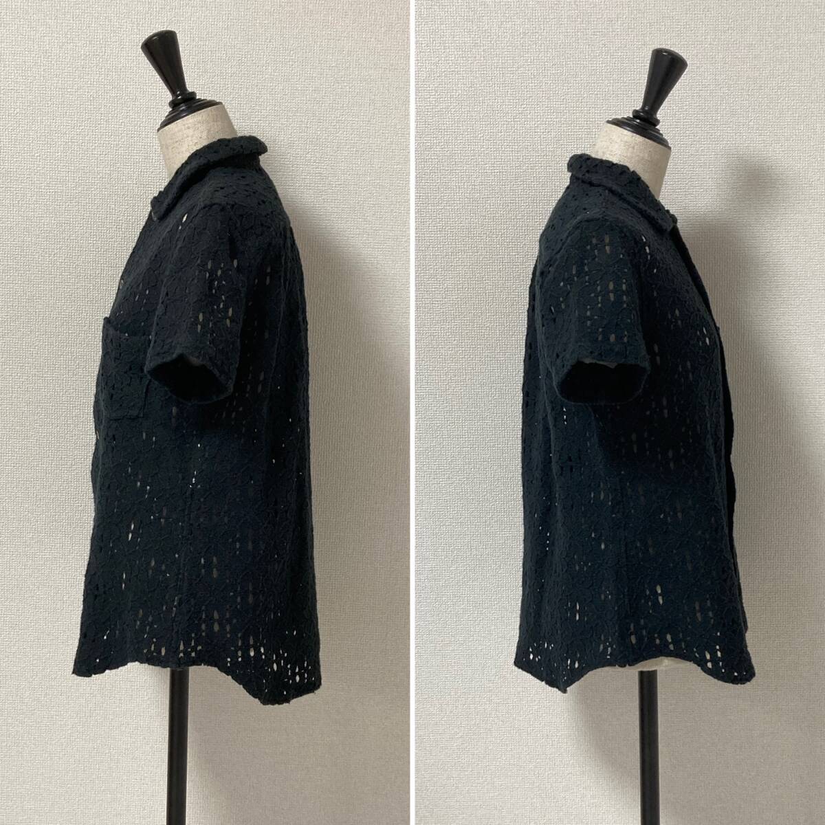 AD1999 COMME des GARCONS フラワー カッティング 総レース 半袖 ブラウス ブラック