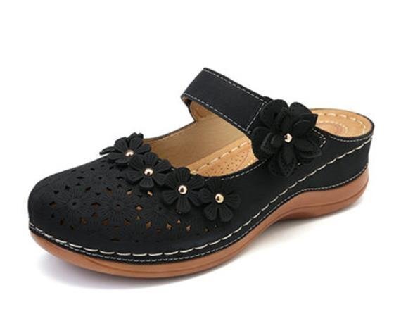 OHJ423☆レディーズ スリッパ 厚底 ビーチサンダル おしゃれ 花飾り つま先保護 カジュアル サンダル 22.5-26.5㎝