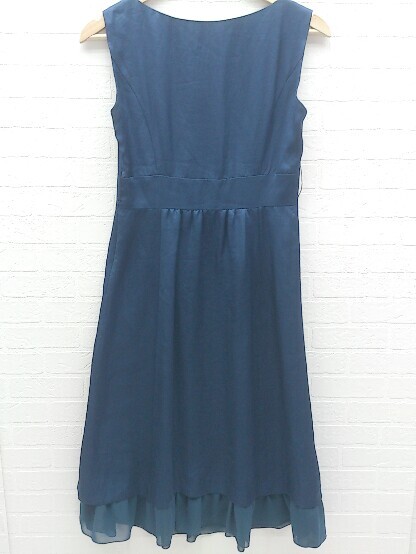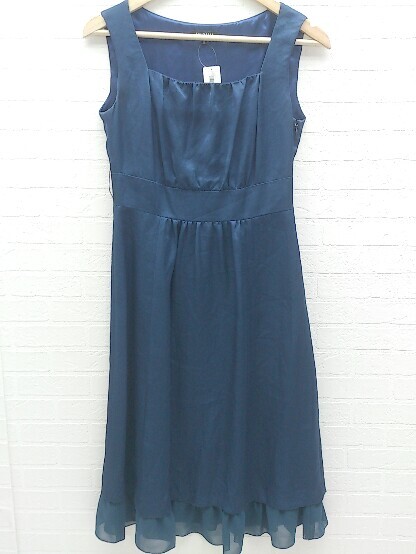 ◇ INDIVI インディヴィ 裾フリル ノースリーブ ロング ワンピース 38 ネイビー *