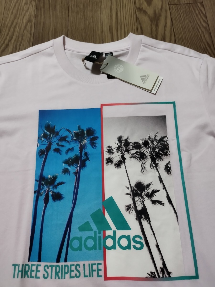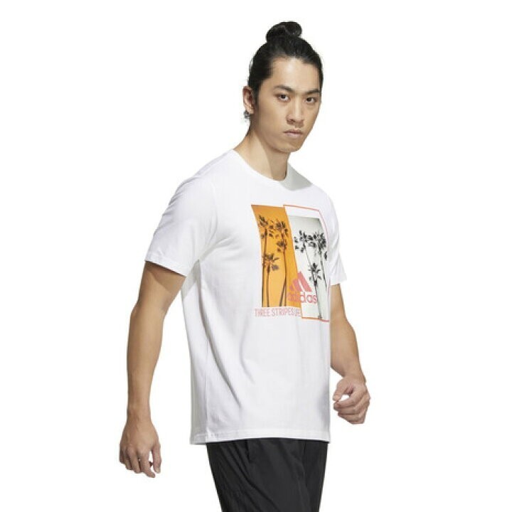 ●このアディダス Tシャツを着ていると、風にそよぐヤシの葉の音が聞こえてきそう。くつろいで楽しく過ごす一日にぴったりの、ソフトなコットンで作られたルーズフィットTシャツ。胸に描かれたフォトグラフィックが、夏のバイブスを届ける。 サステナブルな綿花栽培をサポートしている、アディダスのコットン製品。