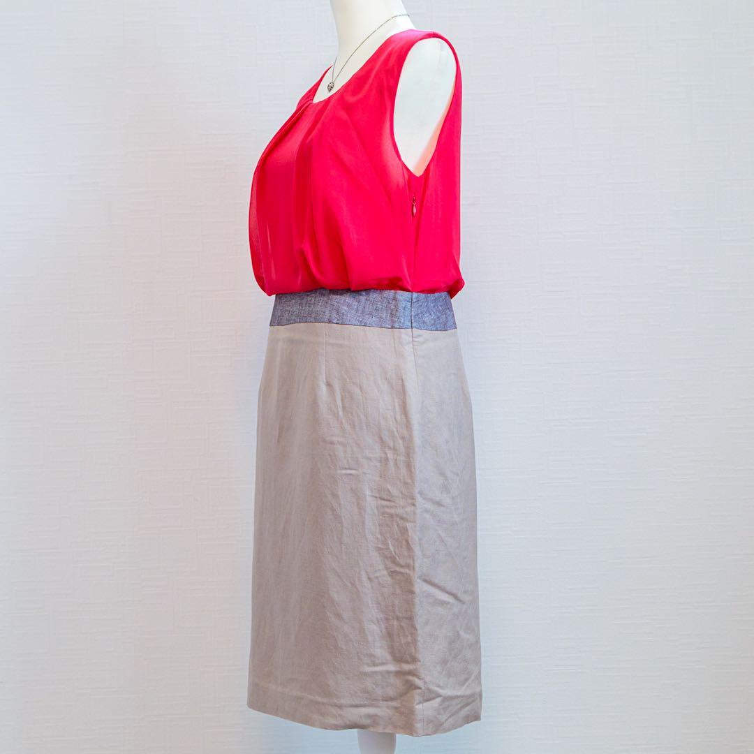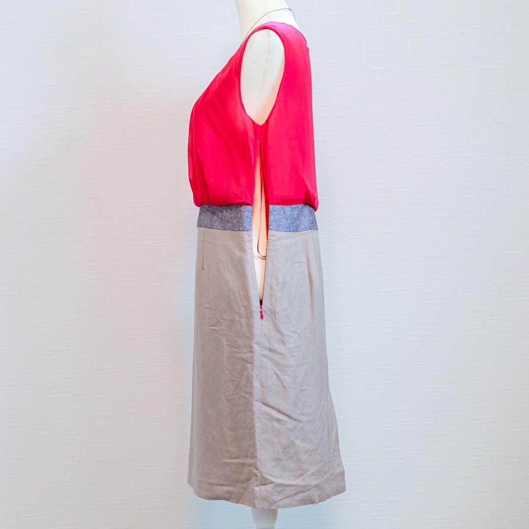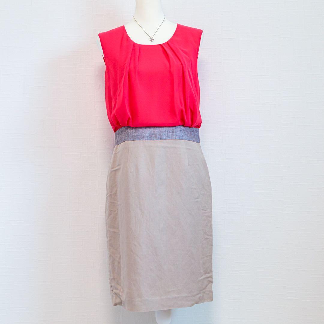 ウエストマーク バイカラー ノースリーブシフォンワンピース スリット入り サイドファスナー 裏地あり