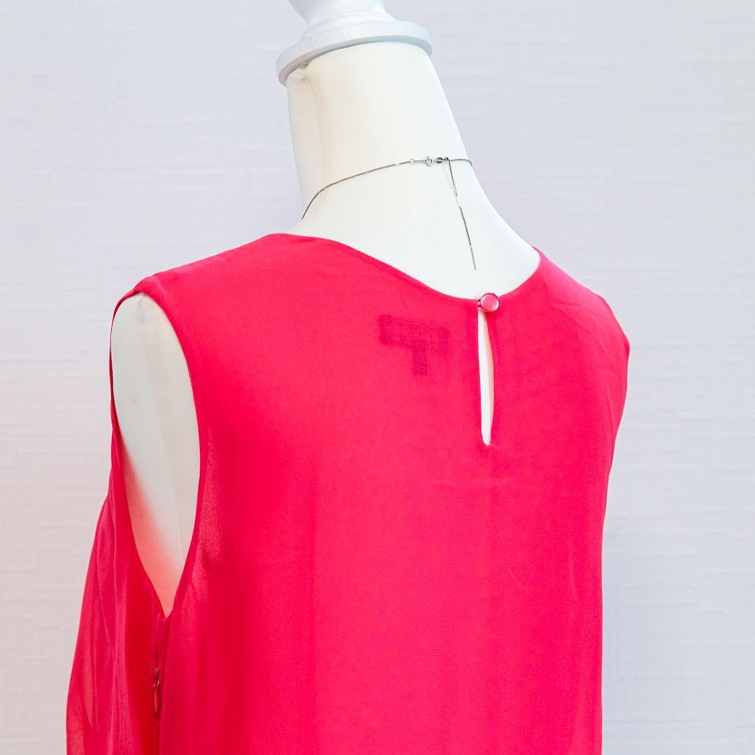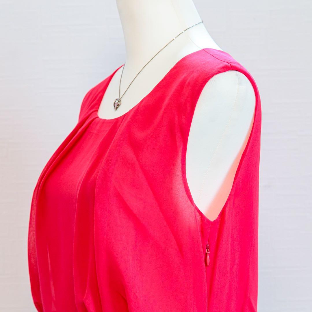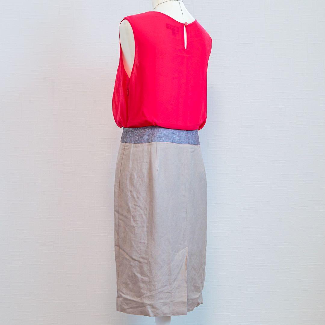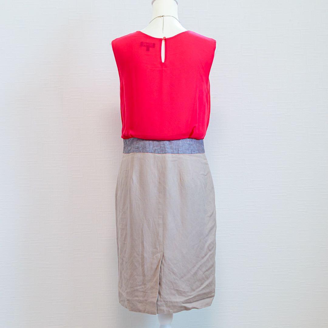 ウエストマーク バイカラー ノースリーブシフォンワンピース スリット入り サイドファスナー 裏地あり