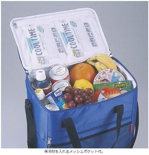 ・商品名 ラフィネ クーラーバッグ20L(ブルー)メッシュポケット付 M-1830・サイズ (約)幅340×奥行240×高さ300mm 容量:20L・素材 本体:表面=ポリエステル150D(PVCコーティング) 内面=塩化ビニル樹脂 断熱材=ポリエチレンフォーム・状態 新品・未使用品・商品情報保冷効力(約):20度以下(JIS)