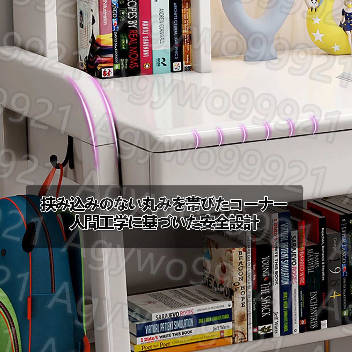 安定性:学習机の脚部は機械的な原理に基づいて設計されており、机全体の安定性を大幅に向上させています。また、サイドテーブルの角を丸くすることで、ぶつかりにくい滑らかなカーブを描いています。