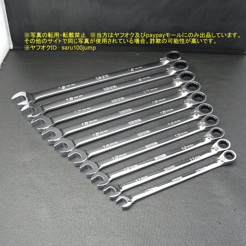 リバーシブルラチェッティングレンチセット 正逆切り替え付き 滑り止めデザイン コンビネーションレンチ ギヤレンチ