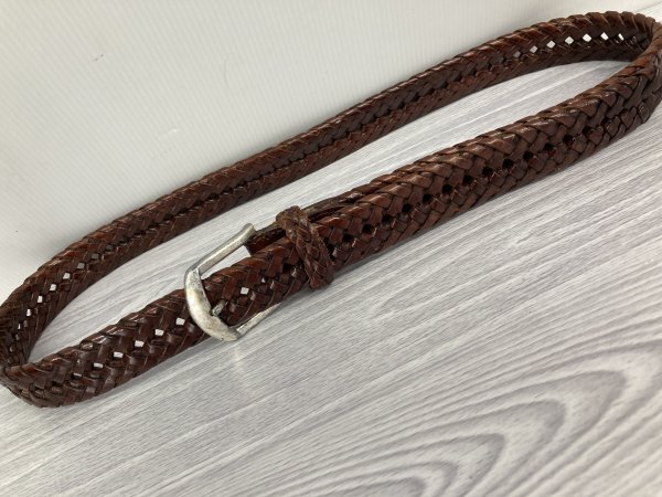 サンプル品(展示品、試作品)の牛革メッシュベルトを出品致します。上質の牛革をメッシュに編み上げ飽きないデザインに丁寧に仕立ててあります。天然皮革特性のエイジング(経年変化)が期待でき独特の光沢が楽しめます。サンプル品(展示品、試作品)、天然皮革の特性の為、写真には見え難い革シワ、革の凹凸、小傷、色落ち、色むら、バックル金具腐食色補修等ございますので、中古品として出品いたします。サンプル品、中古品をご理解の上、ご検討お願いいたします。格安にてお出ししますのでノークレーム、ノーリターンもご理解の上、ご検討お願い致します。