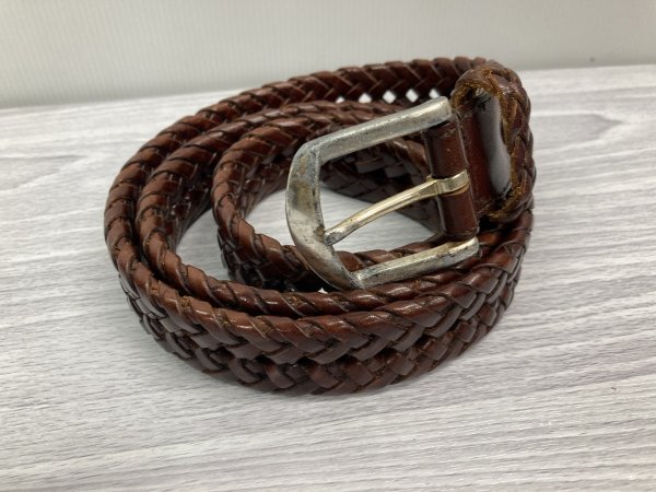 大きいサイズ ビジネス カジュアル ベルト メッシュ 牛革 W最長実寸約96cm 茶★SAMPLE中古格安!