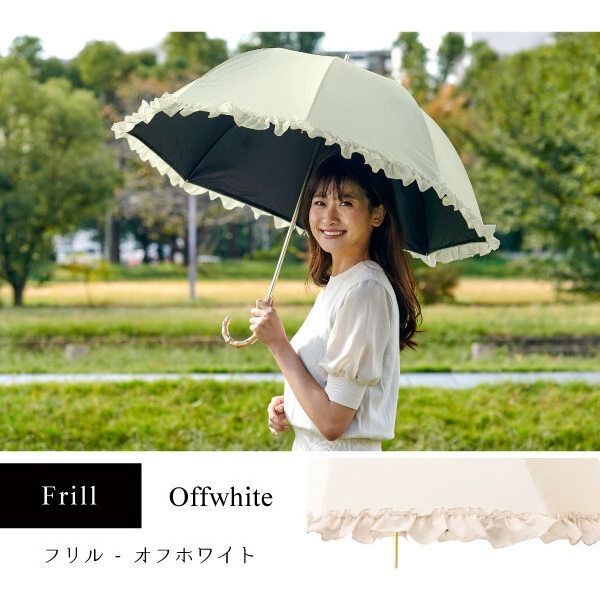 傘の内側にブラックコーティングを施しているので紫外線はもちろん、地面からの照り返しも吸収することで赤外線、可視光線も最大限カット。生地には撥水加工を施しているので、晴れの日だけでなく雨の日もOK。