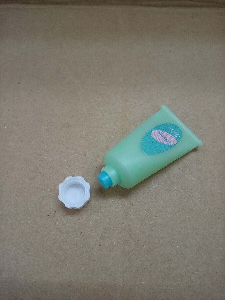 シリーズによって玩具内容が変わりますが、こちらは珍しい、「かわいいおしゃれシリーズ」です。化粧品などのシリーズですね。FACE BEAUTYと書いたチューブの玩具が入っています。