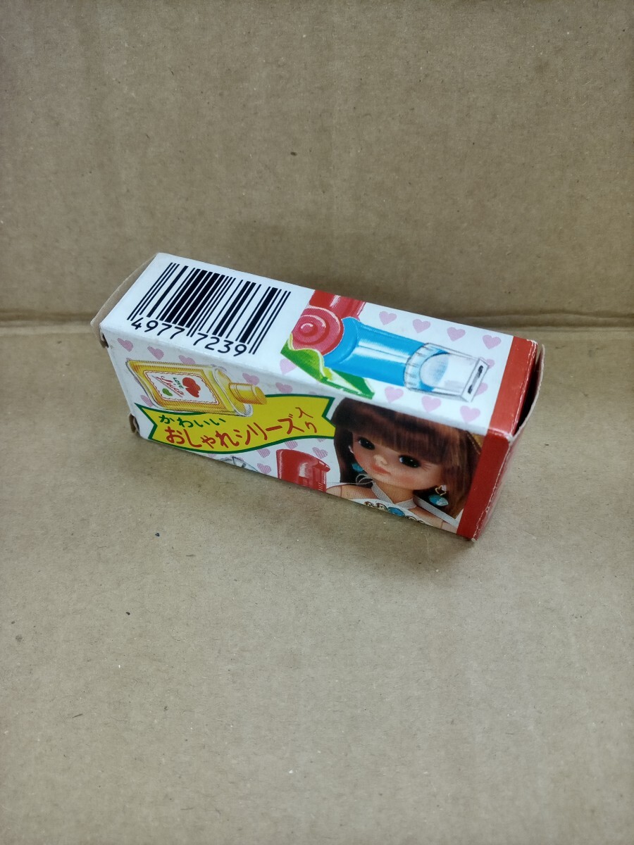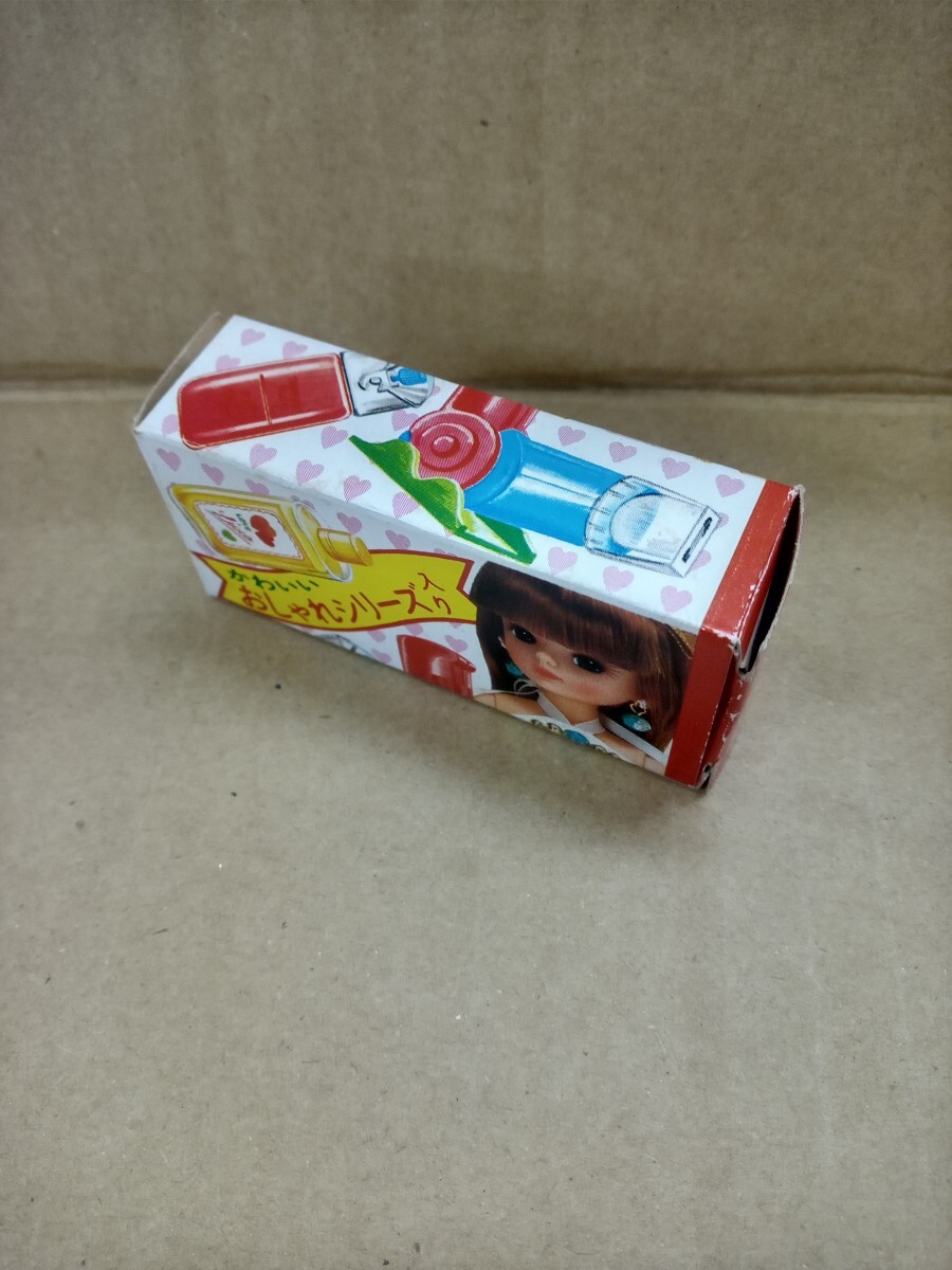 ロッテから発売の、1980年代の食玩、リカちゃん ガム のおまけと、パッケージ/箱 です。80年代の、箱に窓が無い頃の物です。
