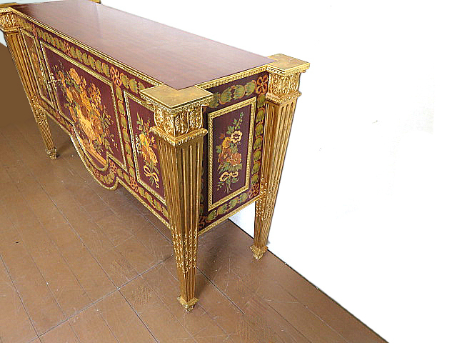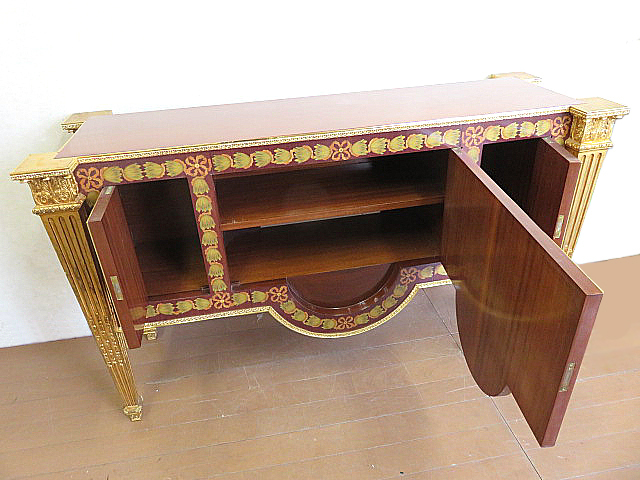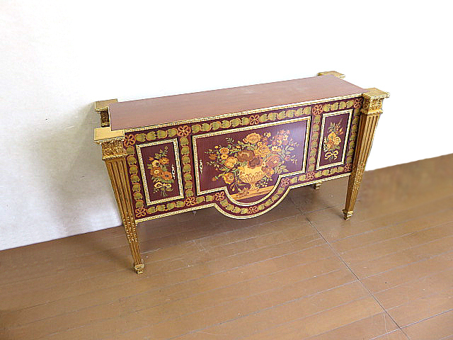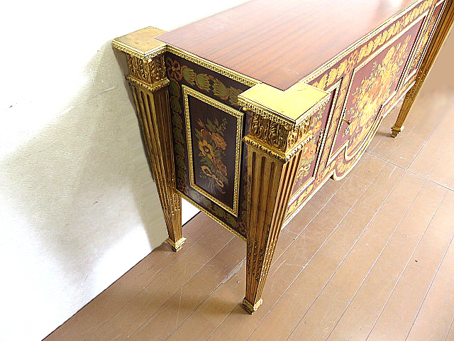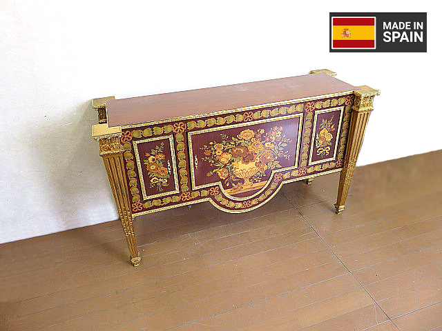 スペイン最高級金彩象嵌細工コンソールテーブル/リビングボード/キャビネット/飾り棚アンティーク調 検)ユーロカーサ/マリネール/イタリア