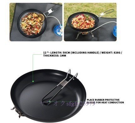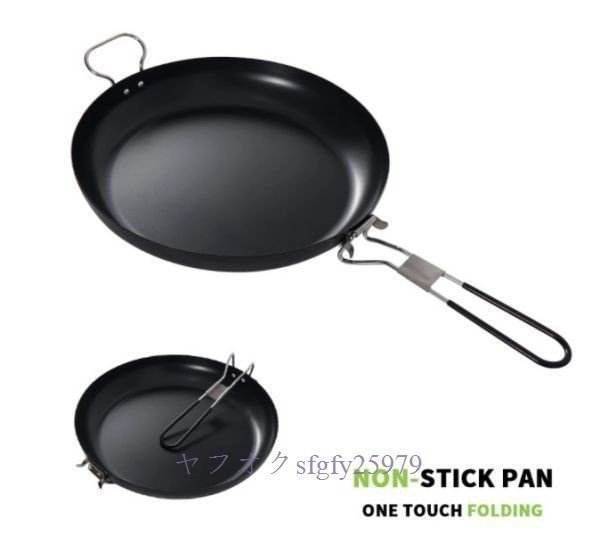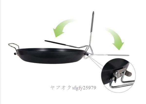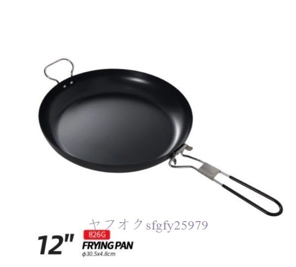 P113☆新品キャンプ飯の相棒に! チタン製のフライパン12インチ 持ち手がたためる パン 鍋 クッカー 屋外用調理器具 アウトドア用品