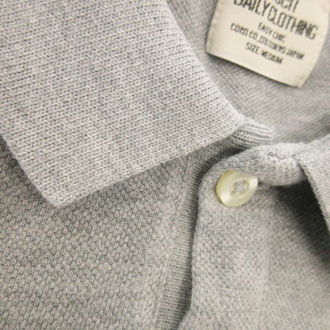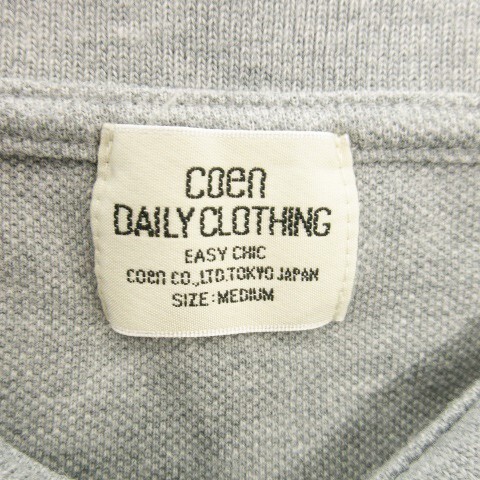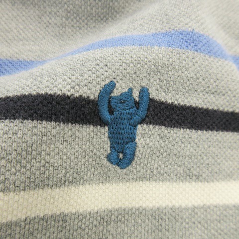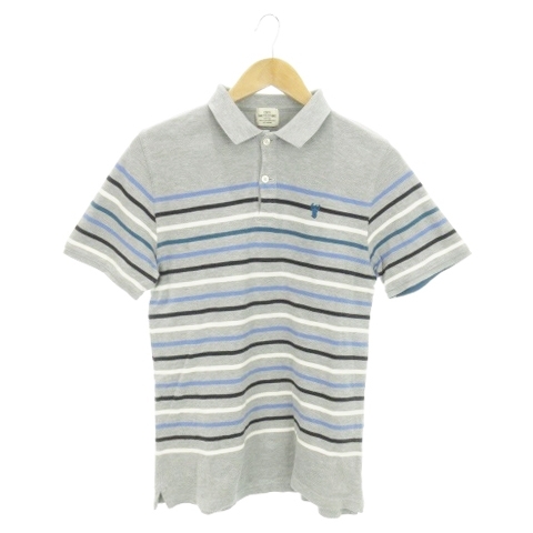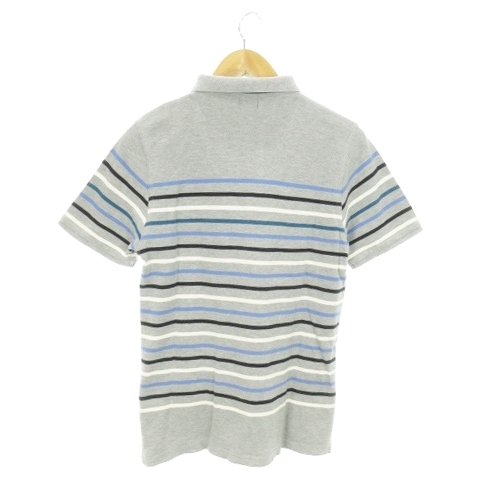 コーエン coen ポロシャツ 半袖 コットン 鹿の子 ストレッチ ボーダー ワンポイント 刺繍 M グレー /AO4 ☆ メンズ
