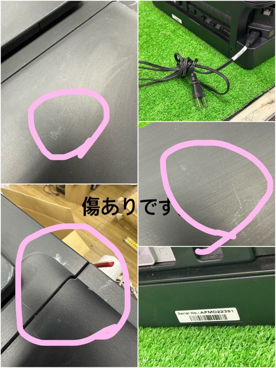 | 動作詳細 | 紙詰まりのエラーが出ていますがパネルあけても紙つまりは見受けられません。インク無しのため印刷確認不可のためJランクです。電源をつけたら立ち上がります。 |