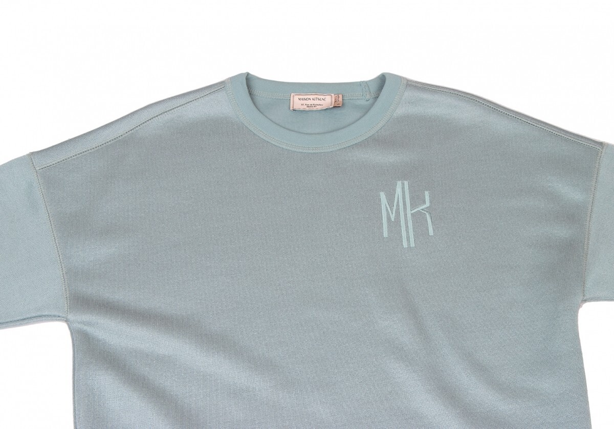 メゾンキツネMAISON KITSUNE ポリコットンポイントロゴ7分袖カットソー 水色S |