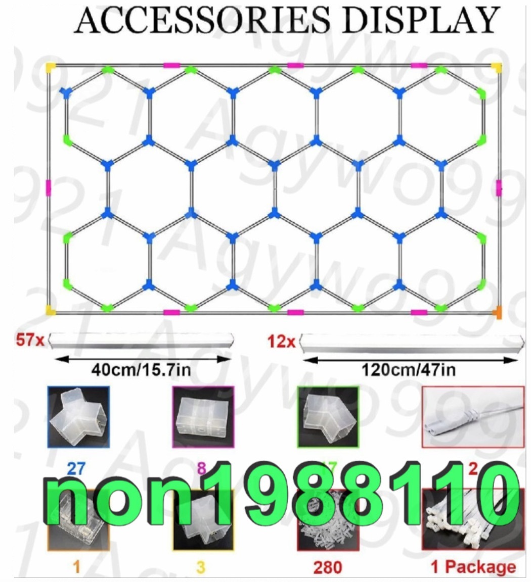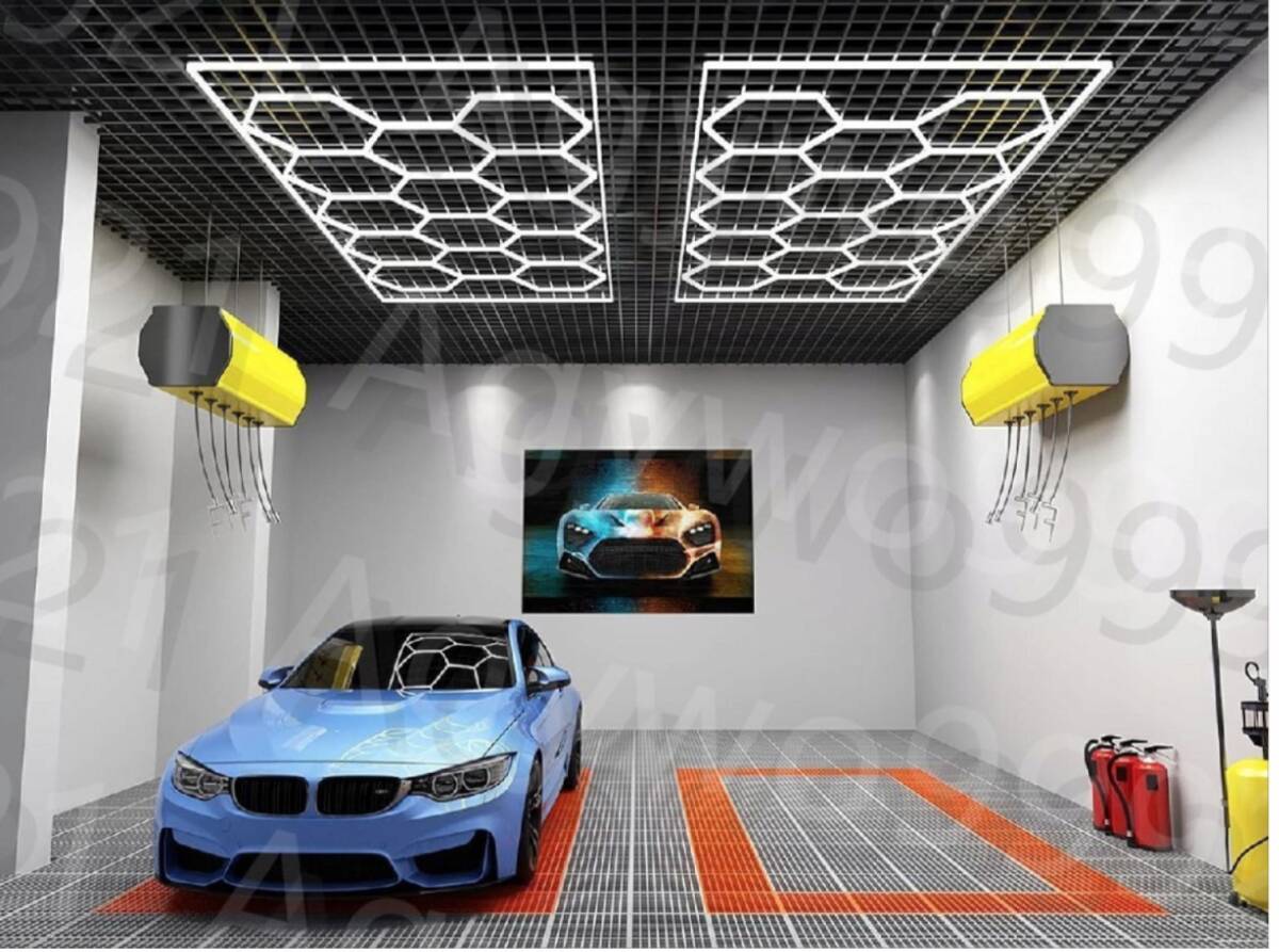 ガレージ用六角形LEDライト、ガレージ天井用14グリッドLEDハニカムライト、アルミニウムハウジングとPCプラスチック製、Ip54防水、洗車室